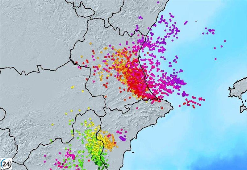 La mañana del lunes continuó con tormentas en las playas del sur de la Vega Baja alicantina, específicamente entre Pilar de la Horadada y Torrevieja, donde se registró granizo pequeño. Asimismo, en el mar, se observaron chubascos esporádicos en los litorales de Castellón y el norte de Valencia.