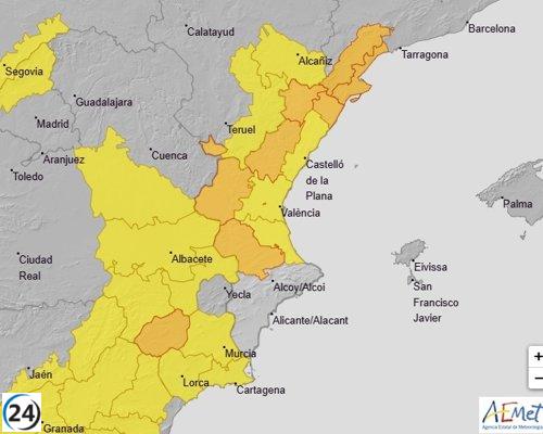 Valencia y Castellón en alerta naranja por lluvias intensas que podrían superar los 150 mm en un día.