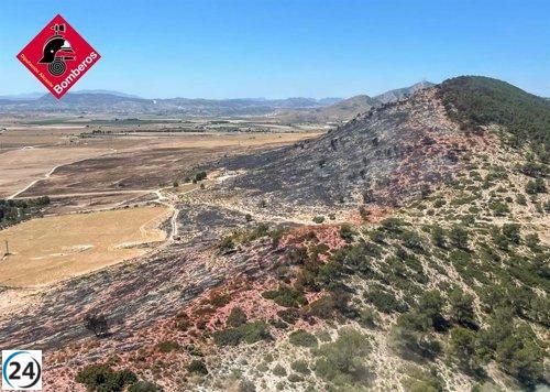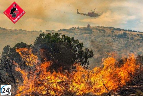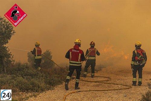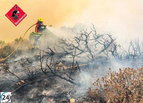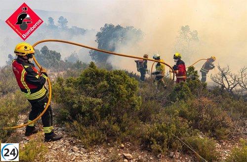 Bomberos controlan incendio en Ibi (Alicante) mientras previenen reactivaciones por calor y viento.
