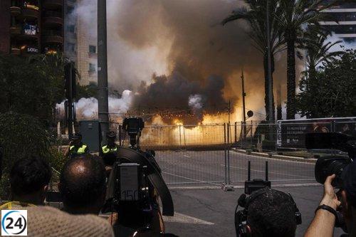 Alicante rinde homenaje al pirotécnico Sirvent con humo negro en el cierre de las Mascletaes de Fogueres.