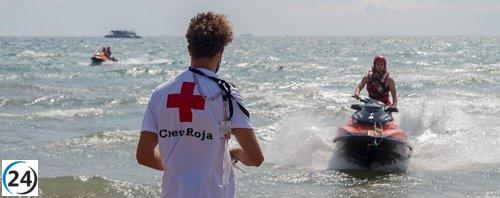 Bañista salvado en Guardamar tras quedar a la deriva en un flotador.