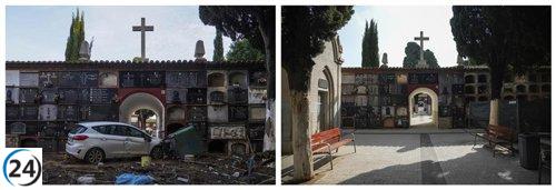 Operarios de Sedaví restauran 2.500 lápidas tras la devastadora dana.