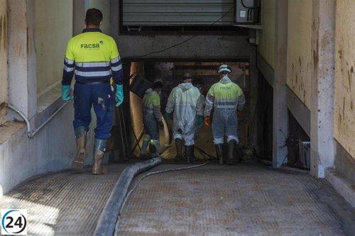 Operativo de desalojo de lodos interviene en 125 garajes y sótanos por la dana este viernes.