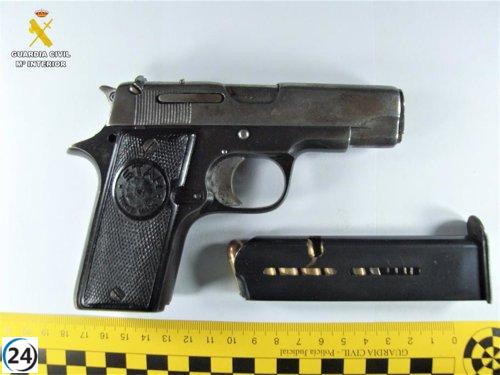 Dos arrestados por posesión de armas de fuego y carteras con emblema de la Guardia Civil en su vehículo.