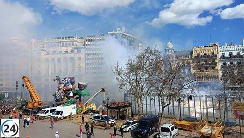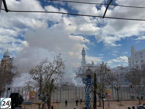 Centenar de heridos por la multitudinaria mascletà en la Plaza del Ayuntamiento.