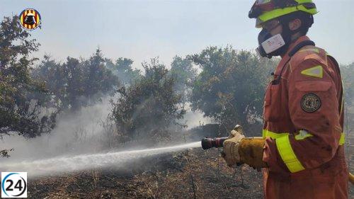 Bomberos evalúan zona de incendio controlado en Alfarrasí, Valencia.