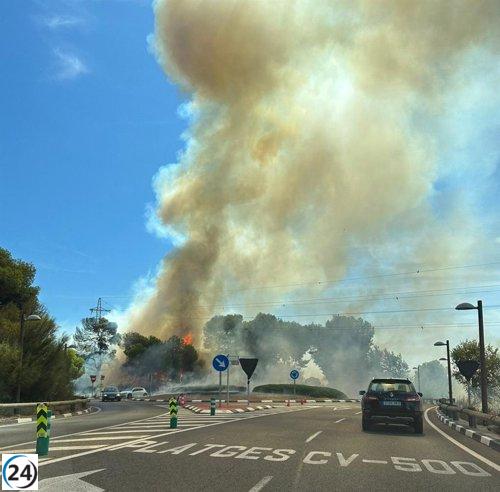 Efectivos combaten incendio forestal en Puçol con gran esfuerzo