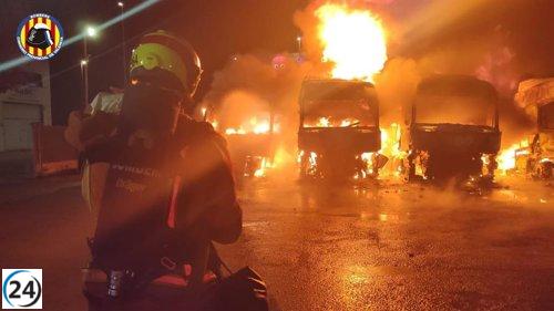 Extinta una conflagración en cuatro camiones en aparcamiento de Sedaví.