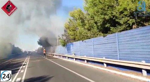 Incendio de vegetación en la N-332 en Torrevieja paraliza la circulación por dos horas antes de ser extinguido