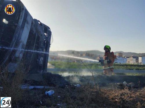 Tras incendio en un camión, la A-7 en Alginet vuelve a estar operativa.