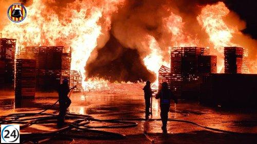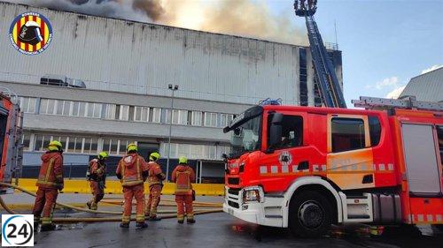 Bomberos luchan contra incendio industrial en empresa de alimentación en Silla