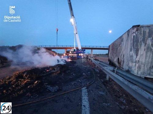 Incendio de dos camiones tras colisión en A-7 en Nules sofocado después de ocho horas.