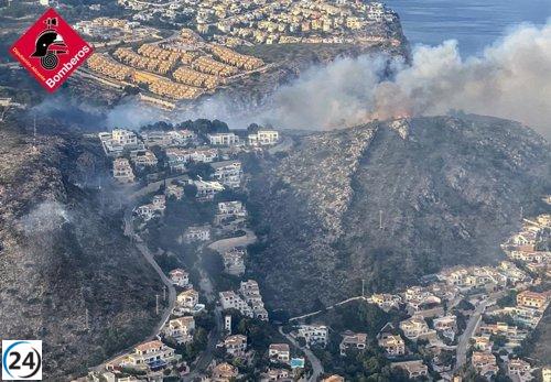 Incendio forestal en Teulada obliga a evacuar viviendas cercanas en la cala Llebeig.
