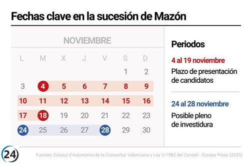 Claves de la elección del sucesor de Mazón: La última semana de noviembre será decisiva para la investidura.