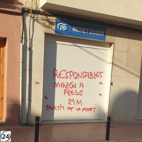 El PP repudia ataques vandálicos en sus sedes de Benetússer, Alfafar y Catarroja que piden la prisión de Mazón.