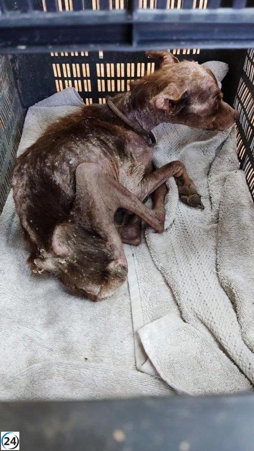 Investigan supuesto maltrato a un perro abandonado y desnutrido.