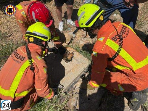 Dos perros rescatados de una acequia de Genovés después de dos semanas desaparecidos.