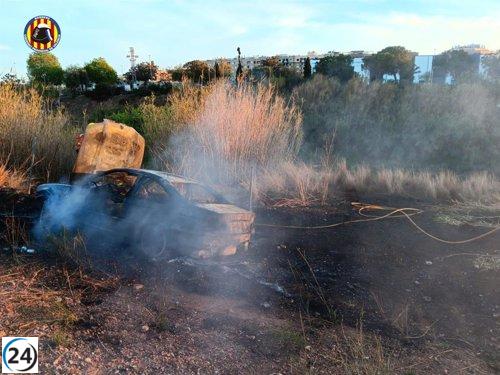 Incendio en Torrent controlado tras accidente de coche por barranco.