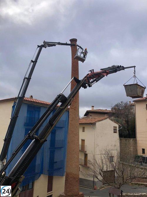 Desmantelan sección de la chimenea de la Fàbrica del Tint en Morella por peligro de colapso y evaluarán su reconstrucción.